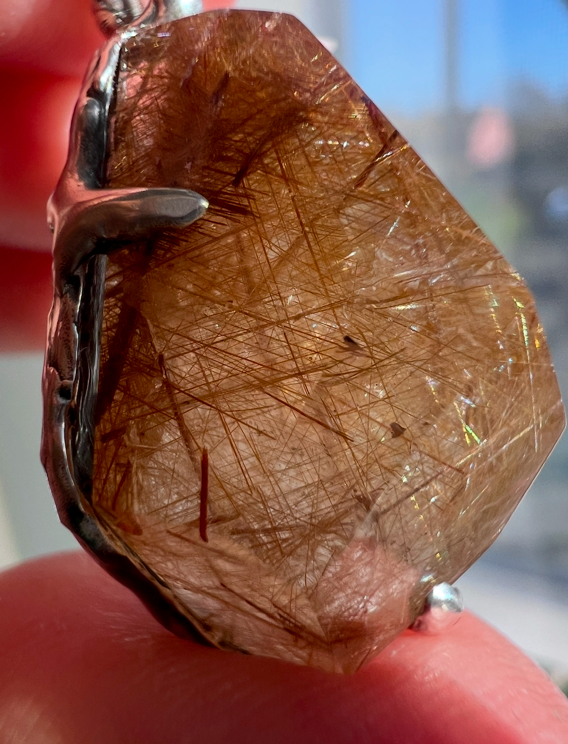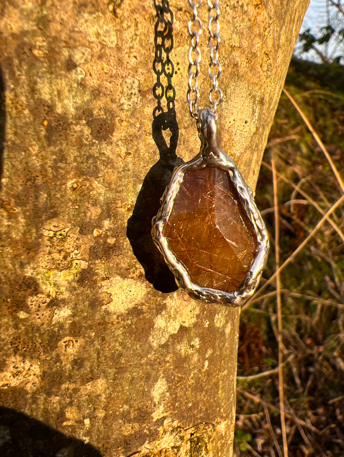 Elevate your energy with this stunning Brazilian Quartz Freeform, packed with vibrant golden rutile strands and set in chunky sterling silver. Each shimmering filament of rutile captures the light, creating a radiant interplay that is both mesmerizing and deeply powerful.